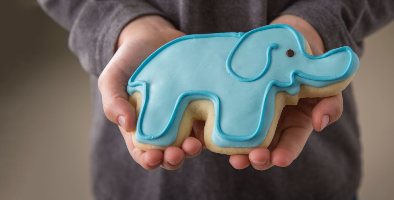 The elephant shape for the cookies was inspired by Dr. Joshua Schiffman, who is studying elephants in an effort to find a cure to childhood cancers.