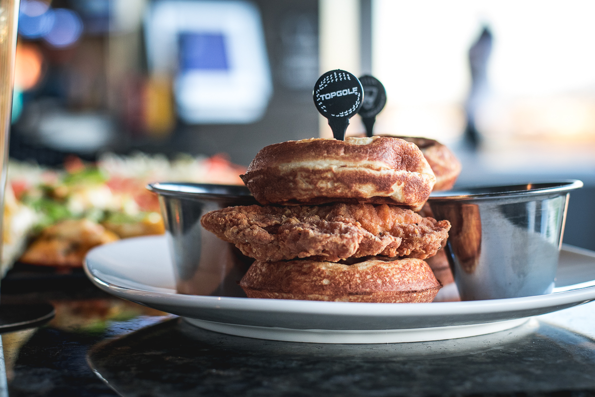 - Chicken & Waffle Sliders ($9.50) – two house-made Belgian waffle sliders, crispy chicken tenders, maple syrup, jalapeño gravy