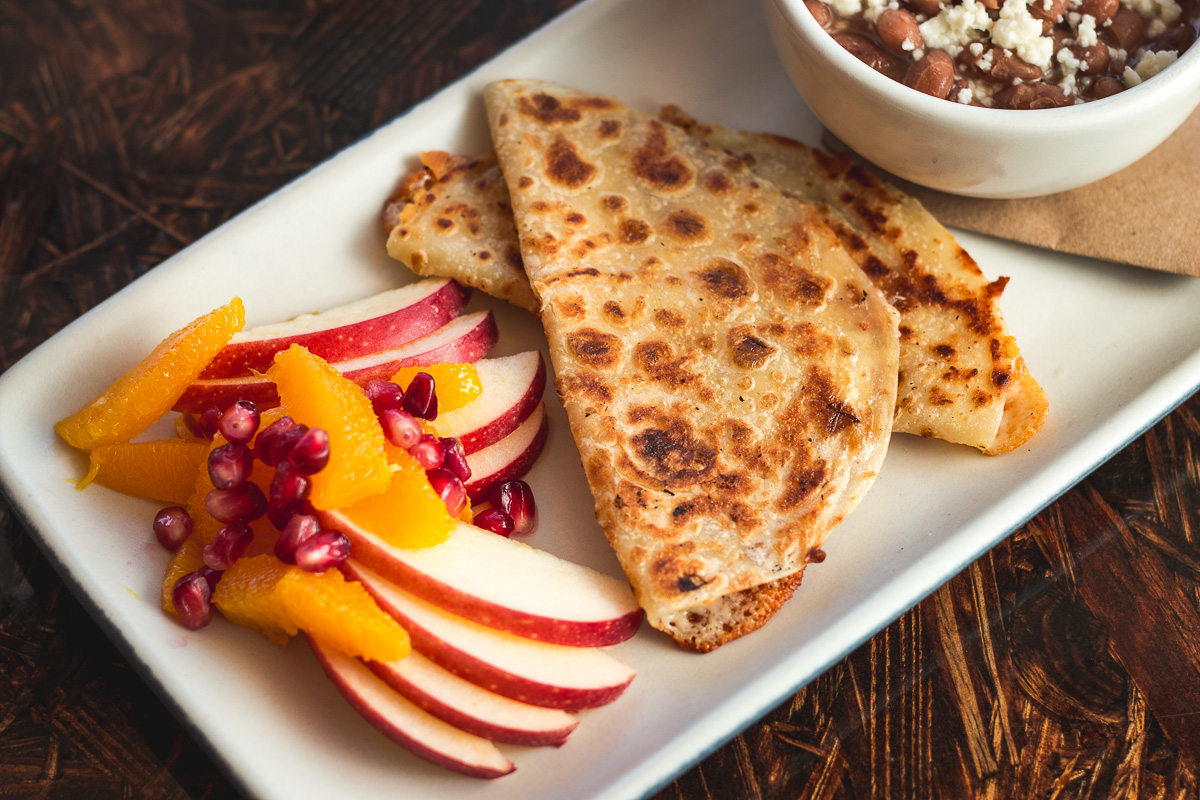Street Tacos ($6) can be filled with poc chuc, al pastor, cochinita pibil, puerco verde or chicken tinga or you can simply order a Cheese Quesadilla ($5).
