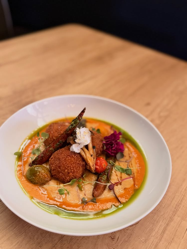 Brussels sprouts and amaranth get the royal treatment in the Coles Con Mole Chilhuacle. The yellow mole utilizes the rare yellow chilhuacle pepper. Chef David Solorzano makes trips down to Mexico to stash up on rare peppers for the restaurant.
