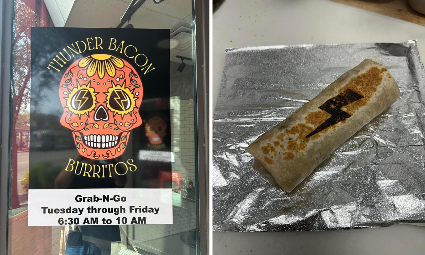 Meet Thunder Bacon Burritos. From 6:30 – 10 a.m. on Tuesday – Friday, Reilly and the crew will be making a certain amount of breakfast burritos and once they’re gone, well, they’re gone. It’s exciting, right? The early bird gets the worm and in this scenario, it’s in the shape of a massive burrito.
