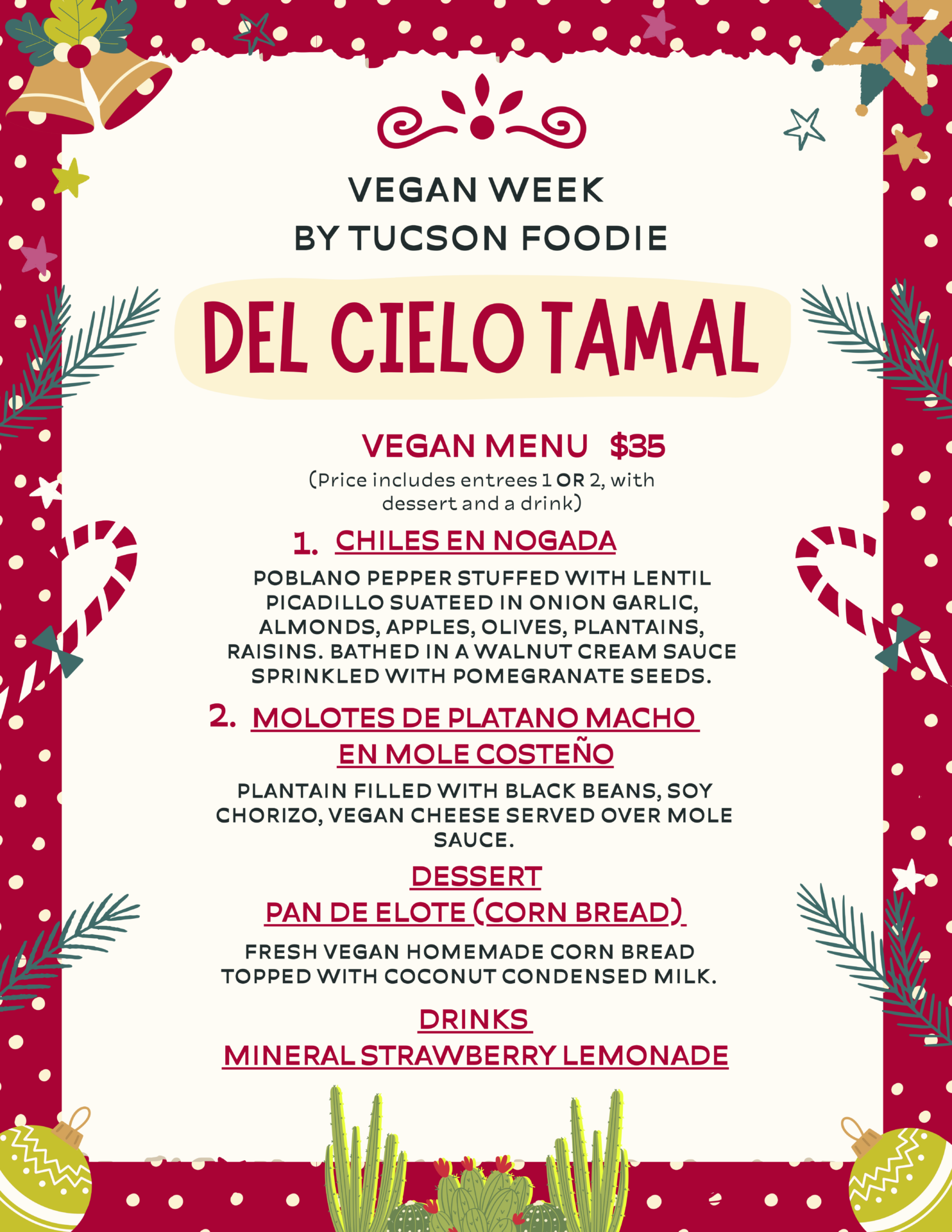 Let’s make this event a success. From now until Saturday, December 7, explore the incredible menus from participating restaurants, and share your experiences with us. Let’s show the world that Tucson is a hub for phenomenal plant-based cuisine.