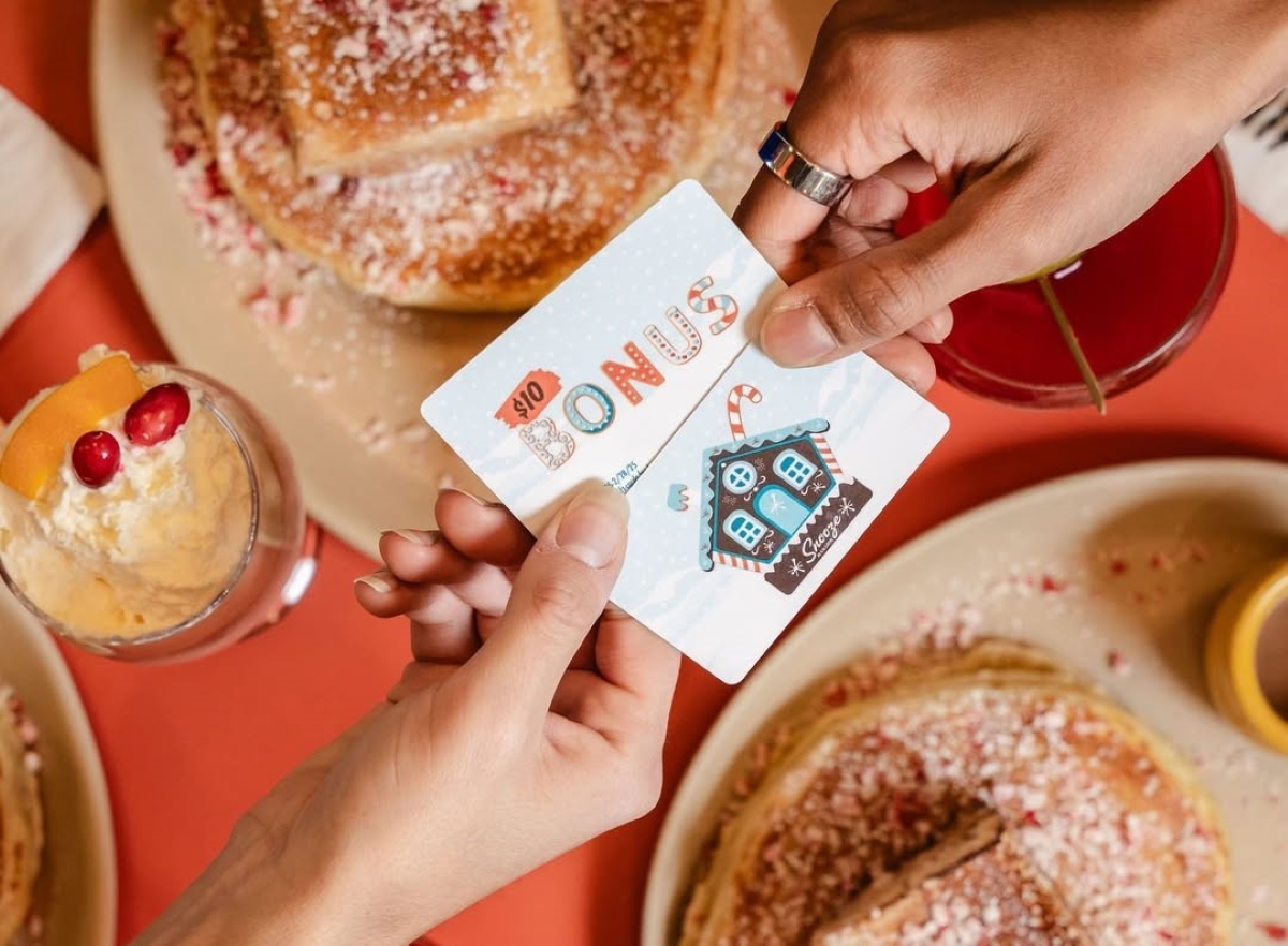 From now until December 31, get a $10 bonus card for every gift card purchase of $50 or more. Also, Snooze, an A.M. Eatery is offering free pancakes through its Pancake It Forward Campaign.