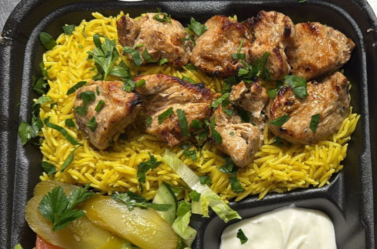 The food is solid! The hummus was smooth, and the falafel was spot on, but the Shish Tawook stole the show. It’s a smoked chicken dish served over perfectly cooked long-grain rice that has this warm, spiced flavor — maybe cardamom. The chicken was tender, the rice was incredible, and I’ll definitely be back for more of that.