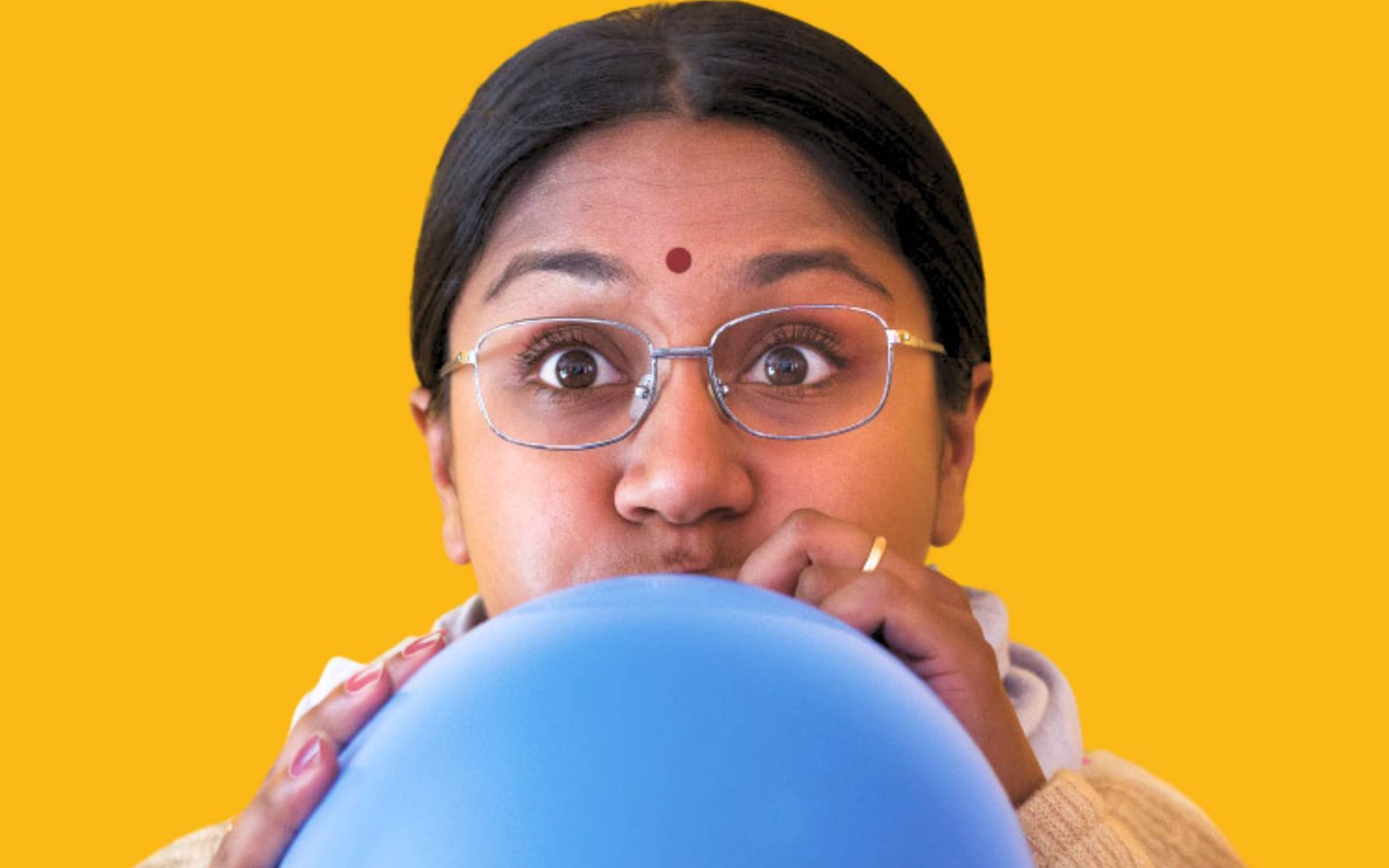 Throughout the play, 100 strangers show up at Mrs. Krishnan’s, who has no choice but to throw “the party of her life.”