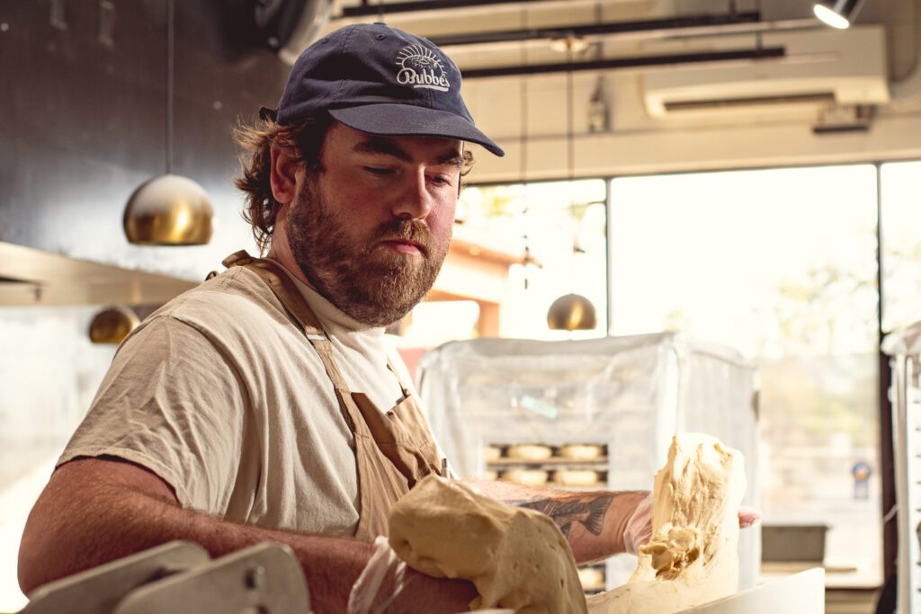Kyle explained, “It was a lot of trial and error, a lot of late nights doing research, trying to replicate different aspects of bagels that I love: a really shiny exterior crust with micro blisters and a soft, chewy interior.”