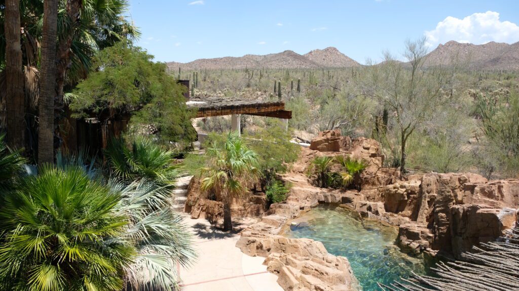 After dinner, we wandered out to the pool – an incredible, stone-carved desert pool with its own waterfall and a shockingly deep end.