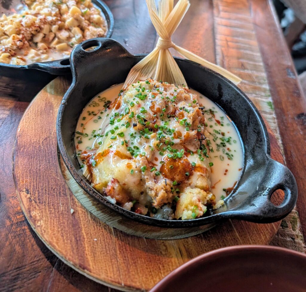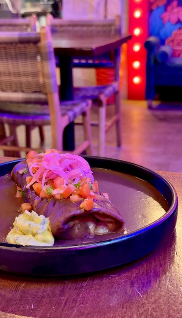 I’ve discovered a new favorite at Copal: a jackfruit birria and roasted mushroom burrito covered in enfrijolada sauce. I also recommend ordering the elote ribs (ask for the vegan version if you’d like to avoid cheese).