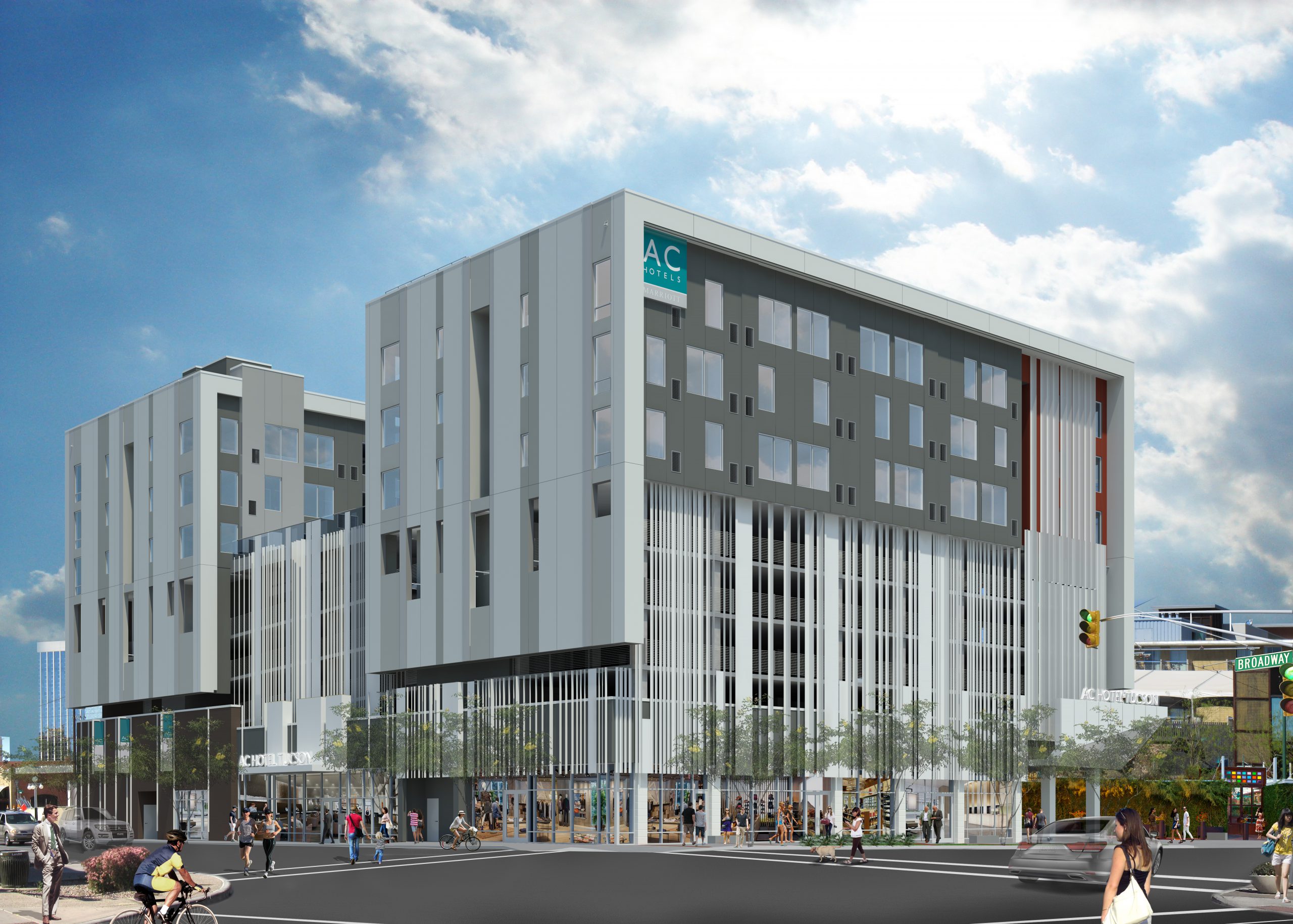The AC Hotel is scheduled to open in the summer of 2017. The eight-story building will feature 136 hotel rooms, a rooftop pool and bar, fitness center, and 1500 square-feet of meeting space.