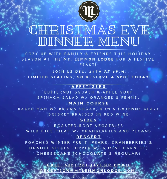 We here on Mt Lemmon want to extend a little bit of holiday cheer to you and yours this Christmas eve and invite you to join us for a delicious meal with our family!