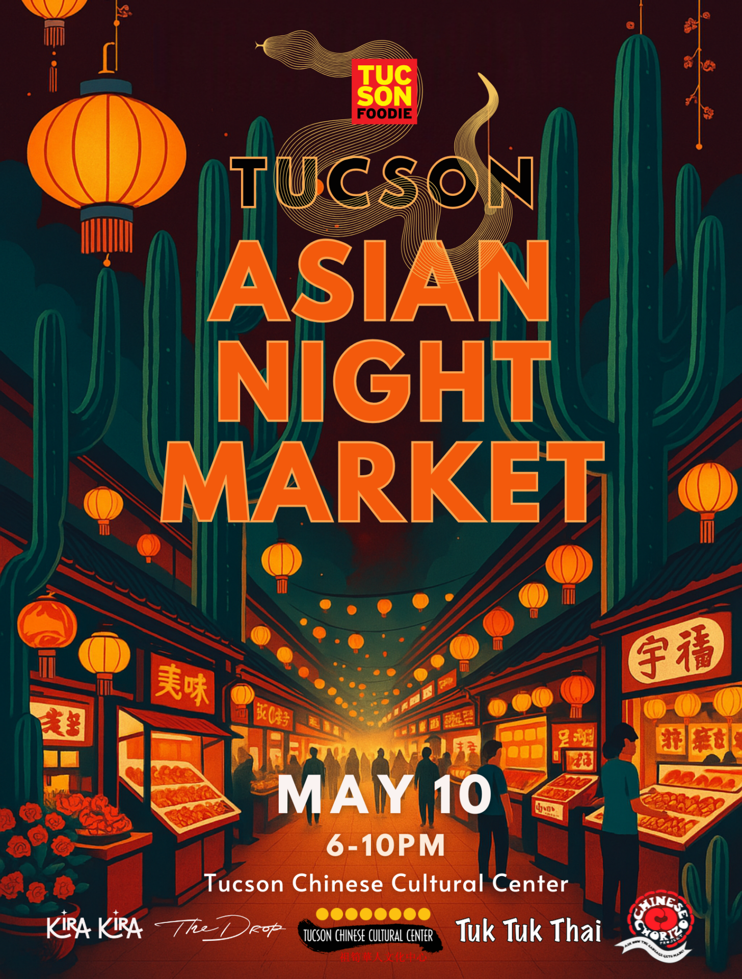 Brought to you by the team behind Vegan Night Market, in collaboration with a collective of local Asian community leaders including The Tucson Chinese Cultural Center, The Drop Dance Studio, Kira KiraCollectibles, The Chinese Chorizo Project, and Tuk Tuk Thai, alongside a passionate group of local Asian community leaders, this one-night celebration of the Asian diaspora in Arizona will transform the evening into a sensory experience of food, movement, music, art, and community.