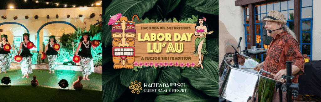 Aloha Tucson! Come and celebrate Hacienda Del Sol’s 3rd Annual Labor Day Luau; A Tucson Tiki Tradition. Indulge in a bottomless Hawaiian-themed buffet, along with island cocktails and mocktails, and live entertainment to whisk you away to paradise. Every guest receives one complimentary drink from our specialty drink menu. A warm welcome awaits at the paradise in the desert!