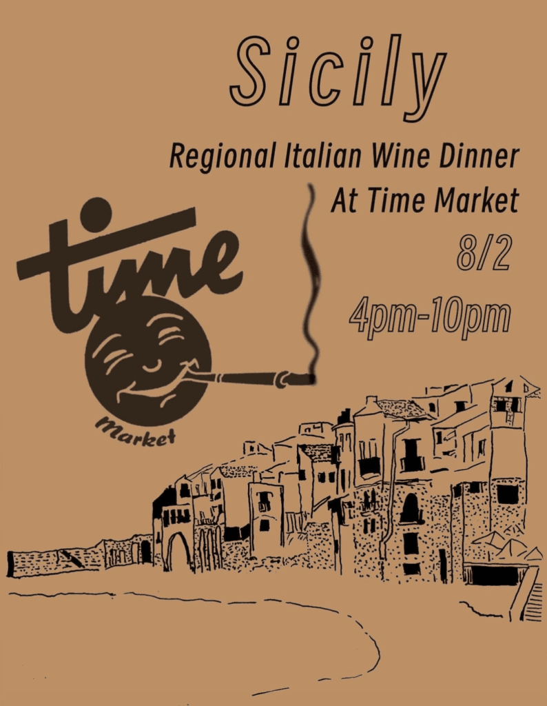 On Saturday, August 2nd, join Time Market for a special evening of Sicilian-inspired dinner specials and curated wine pairings celebrating the cuisine and culture of the Mediterranean’s largest island.