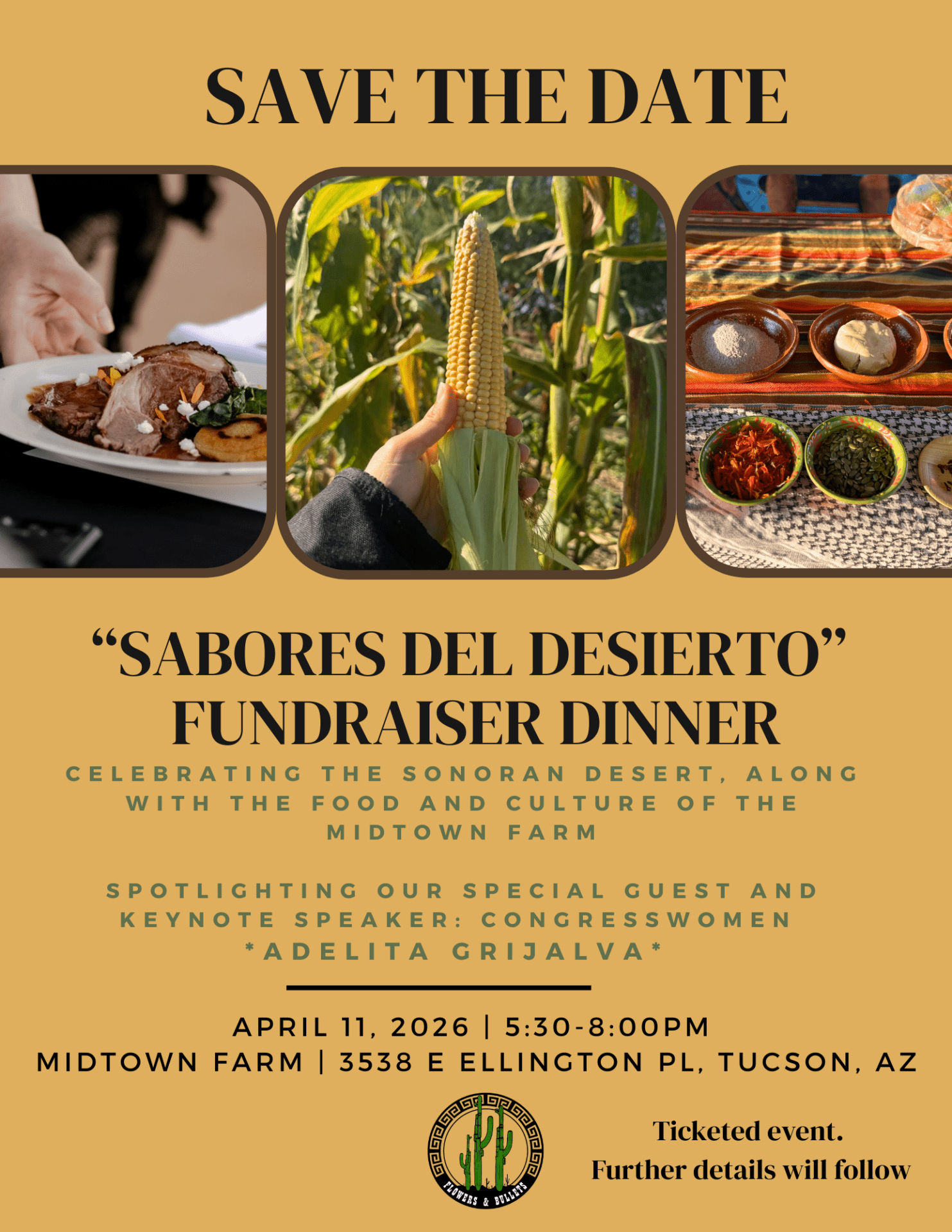 Midtown Farm invites the community to an evening celebrating the beauty, flavors, and vibrant culture of the Sonoran Desert. This special fundraiser dinner will feature a delicious menu prepared by cocineras Doña Juanita and Doña Lourdes, along with Chef Doug Levy of Feast, highlighting the rich culinary traditions of the region and Midtown Farm. The evening will also include special guest Adelita Grijalva, who will share reflections and inspiration in support of the farm’s mission. Guests can expect a memorable night of culture, connection, and community while enjoying the Sabores del Desierto.