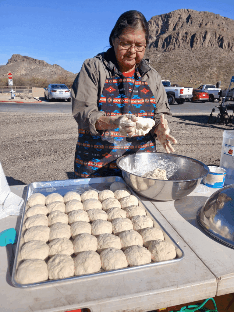 A beloved staple, frybread is both delicious and versatile. It can be enjoyed as a sweet treat topped with honey, powdered sugar, or cinnamon, or as the base for hearty dishes like red chili or savory tacos with heaps of beans, beef, lettuce, tomato, and cheese. Participants will learn how to prepare the dough, shape it, and safely fry it to a golden brown color.