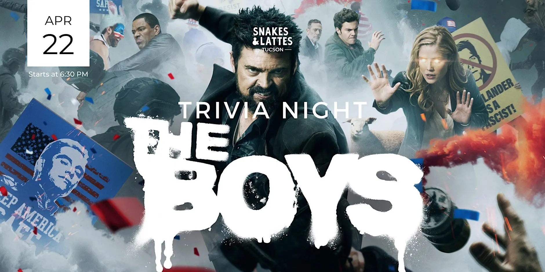 It’s gonna get diabolical! Join us on April 22nd at Snakes & Lattes Tucson for The Boys Trivia Night!
