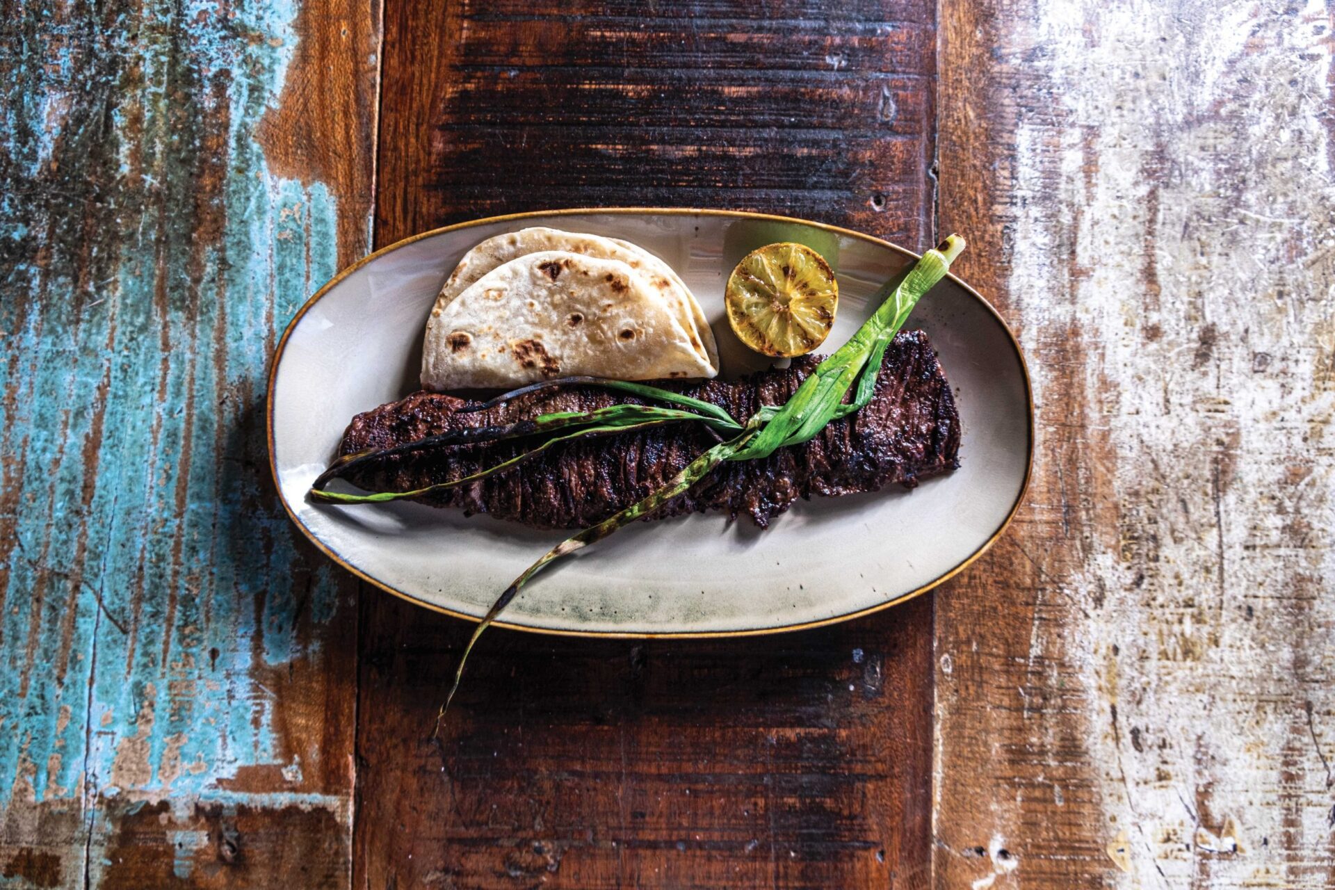 When chef Gary Hickey partnered with the venerable Flores family (of El Charro Café fame) to open a Mexican steak-and-seafood house, offering a down-and-dirty cowboy steak was a no brainer. Finding the right cut of grass-fed beef for the signature carne asada was considerably harder. Hickey, a skilled butcher, finally hit on the “outside” skirt cut. “Imagine ribeye and filet had a baby,” he says. “It’s tender, with beautiful marbling, perfect for mesquite grilling.” Rubbed with salt, pepper and garlic, this charro steak is campfire simplicity raised to an art form.