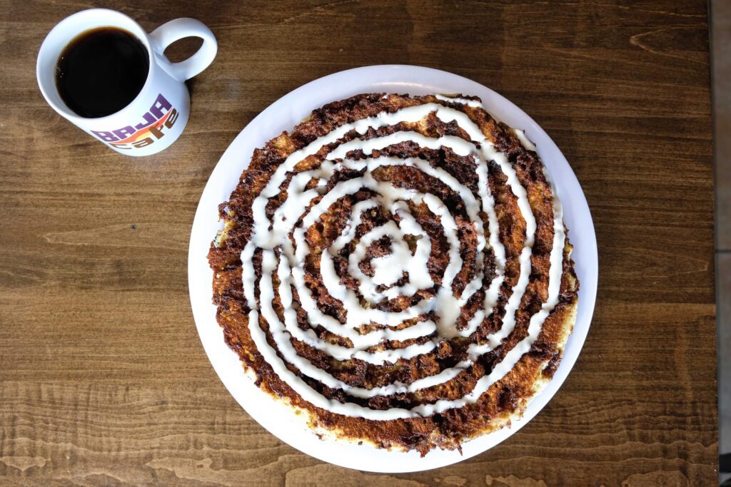 The snickerdoodle pancake at this Tucson breakfast and brunch haunt snags headlines and awards, but for our money, the cinnamon roll pancake is the ultimate indulgence. Owner Kim Scanlan agrees. “[It] is my favorite, too!” she says of the plate-covering flapjack created by chef Gerard Meurer. “The cinnamon-sugar butter [in the batter] offers depth and richness to the pancake, and then texture as the sugar caramelizes as it cooks, offering that light crunch on the edges.” A swirl of cream cheese glaze completes it. “Everyone’s eyes get really big,” Scanlan says. “They can’t believe the size and that it really looks like a cinnamon roll.”