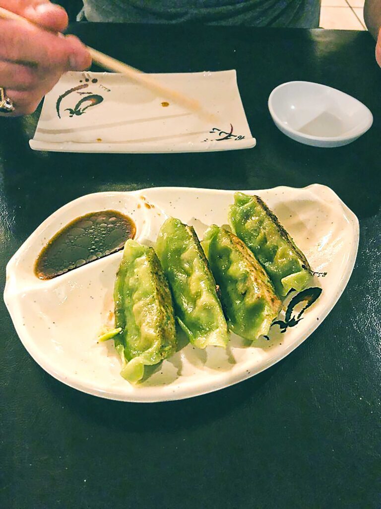 The crescent-shaped Japanese dumplings known as gyoza are typically filled with ground pork and wrapped in a beige, wheat-based dough before being deep-fried or steamed, subsequently leaving plant-based diners disappointed. That’s not the case at this homey sushi spot in central Tucson, where the vegetable gyoza are enveloped in crispy, pan-fried, spinach-infused dough, lending a sage hue and slightly earthy flavor to its finely chopped napa cabbage, carrots, shiitake mushrooms and garlic filling. It’s one of Arizona’s finest meat-free delicacies.